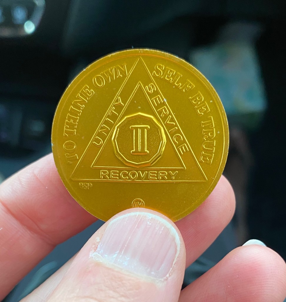 On July 7, I celebrated my second anniversary as a woman in recovery. So, I have not consumed alcohol in TWO FULL YEARS. My hubby, who has been beside me every step of the way, working the 12 Steps in Al-Anon and participating in biweekly therapy sessions, gifted me with an official coin: