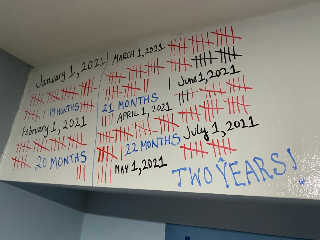 I kind of stopped counting days once I reached 730, although by the time I had a chance to literally “mark” my second sober anniversary, it was July 11, so there are currently 733 total hashes drawn on the basement walls. I think I’m done with that now.