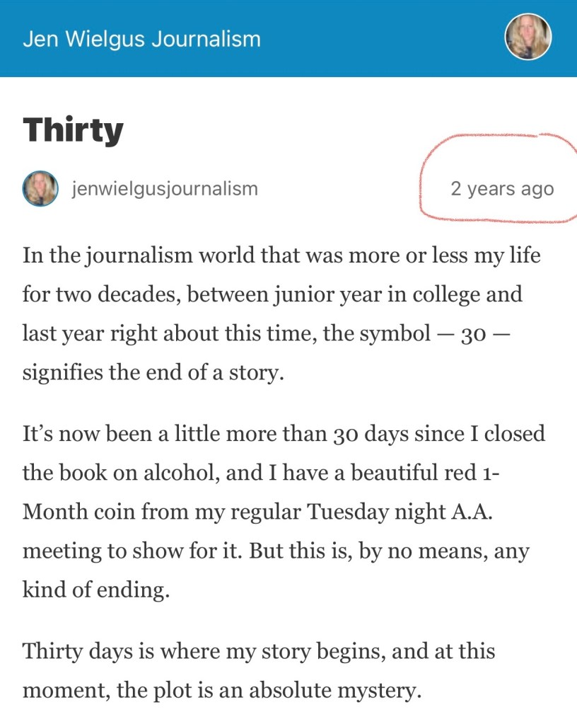 Turns out, the original title I had in mind for this post wasn’t original; the above excerpt is from one of my earliest entries in this sober saga, which is now, officially, 30 MONTHS long.