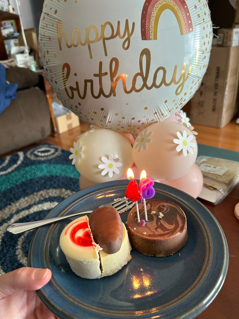Today, my birthday, nudges me over to the far side of my fourth decade. Some might consider 46 officially “over the hill” (remember when “boomers” used to stick those signs in each other’s yards for their birthdays?) but I have never put much stock in the number. I mean, I’m still pretty active and reasonably fit — or I was before my husband brought home a cheesecake sampler yesterday for our early B-Day celebration. 😬