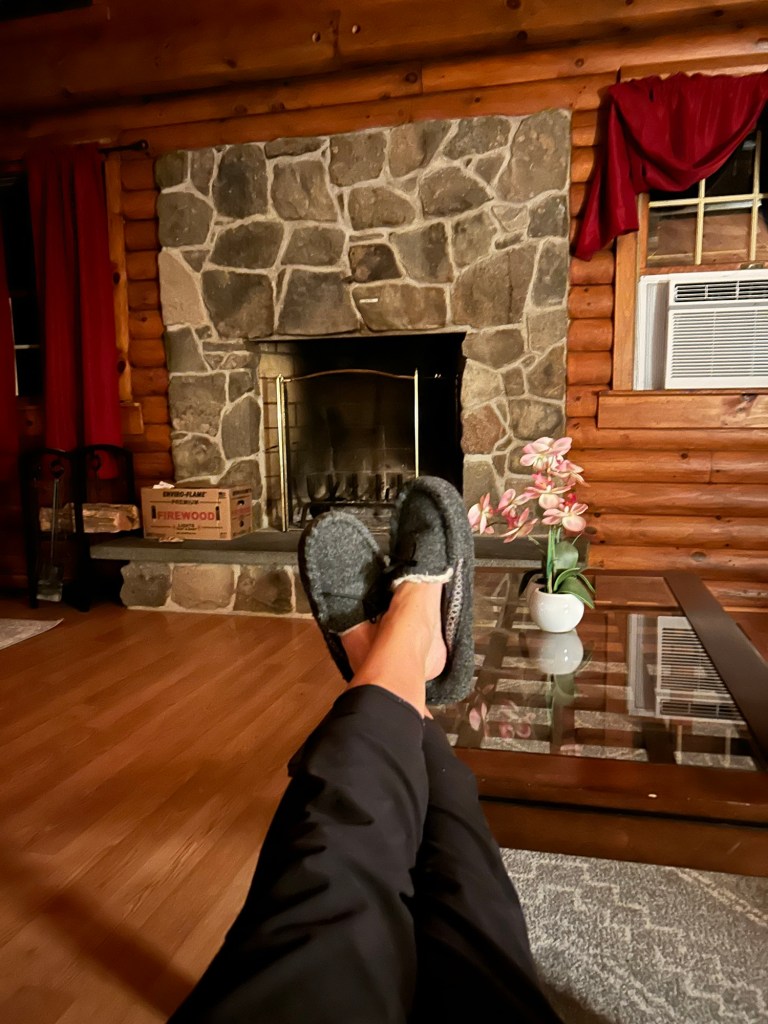 I also noticed during my pre-dawn, caffeine-fueled meanderings that the mantle clock in the rental cabin had stopped, which I thought was fitting, given the theme of this post. My husband’s and my weekend getaway was, ostensibly, about “slowing down” and “getting away from it all.” And it’s not that I didn’t sit still or couldn’t be quiet or wasn’t totally focused on him/us during our long talk on a long walk along the D&H Rail Trail near his hometown of Honesdale. I was present while we lounged together on the deck in the cozy afternoon sun, sipping Recess mocktails…though if I’m honest, I must admit I was also counting the minutes until I could pop those frozen pizzas in the oven…😋