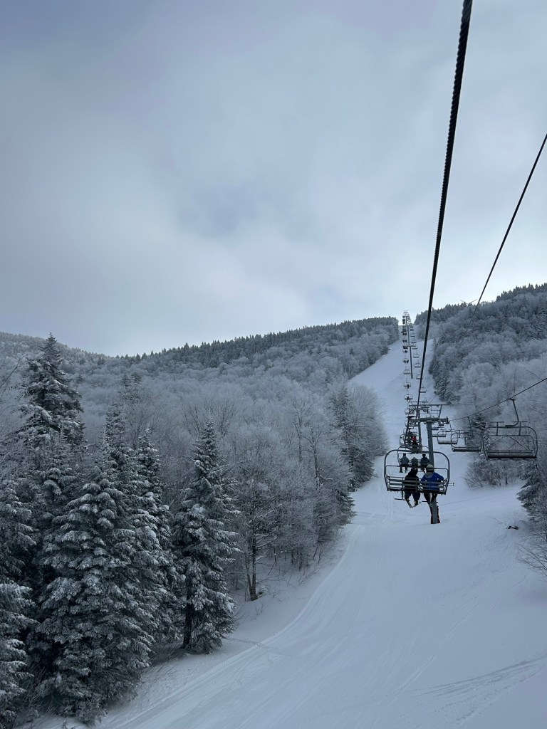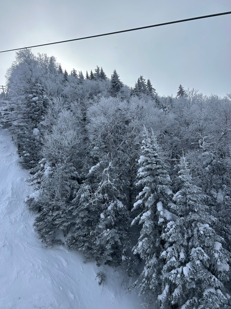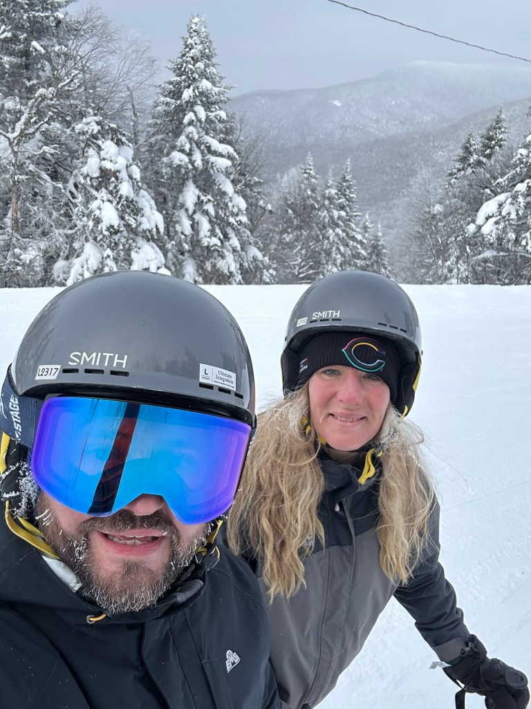 It was 3 degrees in the sun when we hit the slopes for our annual ski trip โ first time in New England; woo! Different world!โ and my husband took his hands out of his gloves multiple times to snap us some pics. No cell phone camera could do justice to the breathtaking majesty of the winter landscape we beheld at Bolton Valley Resort, but you can at least tell by the icicles in our hair that Iโm not kidding about the cold.