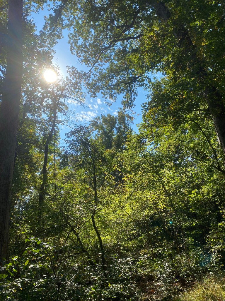 When I entered Tyler State Park on foot Friday afternoon, eyes fixed upward at the pure blue sky (when they shouldโve been checking the path for those little round ankle-killers that fall from the trees ๐ฌ), Iโd already run from Washington Crossing to Bowmanโs Hill Tower on the canal path earlier that morning, then flowed through my usual yoga program on my deck shortly after breakfast. On Thursday, I walked in the park twice, in addition to working out in my basement and doing another hour of yoga. On Wednesdayโฆ